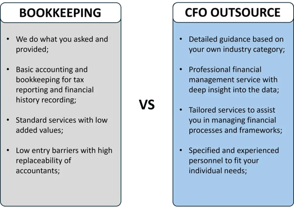 Differences between Bookkeeping and CFO Outsourcing?