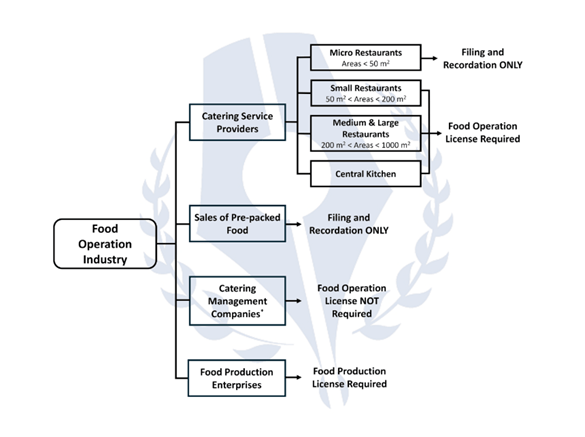 Whether a catering service provider needs to obtain a Food Operation License depends on the size and operation area of the restaurant. For microrestaurants whose areas are smaller than 50 m2, only filing and recordation with the local Administration for Market Regulation is required, and a Food Operation License is not a compulsory permit for them. However, for medium- to large-sized restaurants and central kitchen enterprises with a business area greater than 50m², a Food Operation License is still required.
